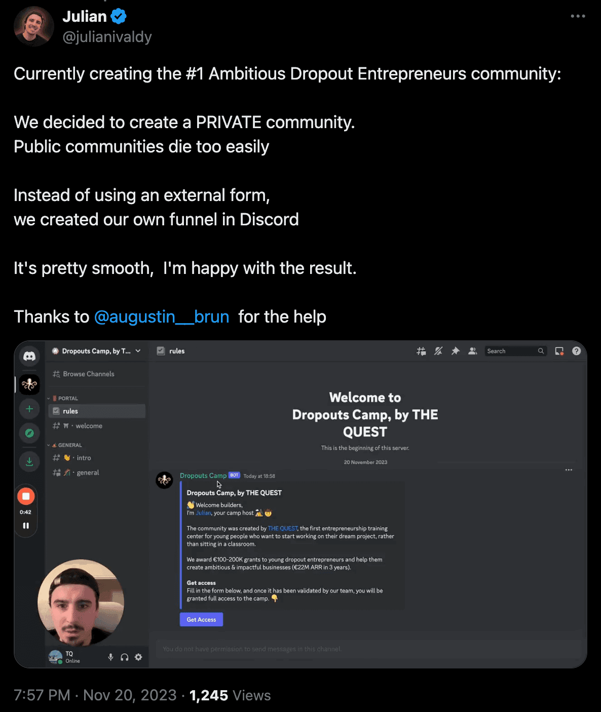 We and our community loved the mini-game that Augustin built for our Discord server. His approach to fostering engagement through daily quests and interactions has greatly enhanced our members' experience.